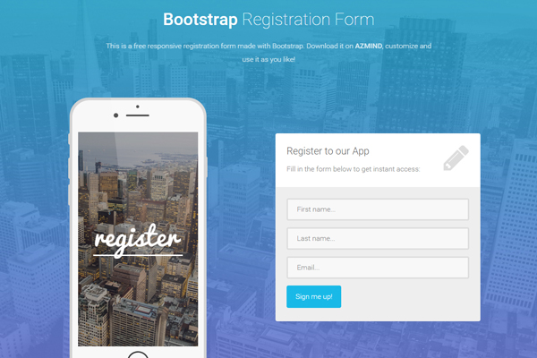 These are 3 free responsive registration form templates made with Bootstrap. Download them on AZMIND, customize and use them as you like!